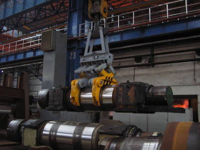 單軋輥吊具采用自動(dòng)啟閉機(jī)構(gòu)控制鉗口開閉,支撐機(jī)構(gòu)支撐在軋輥的軸承座上,鉗體與輥身接觸部位加裝銅板可以有效保護(hù)軋輥不受傷害;支撐機(jī)構(gòu)可以調(diào)節(jié),可以適用不同直徑的軋輥。